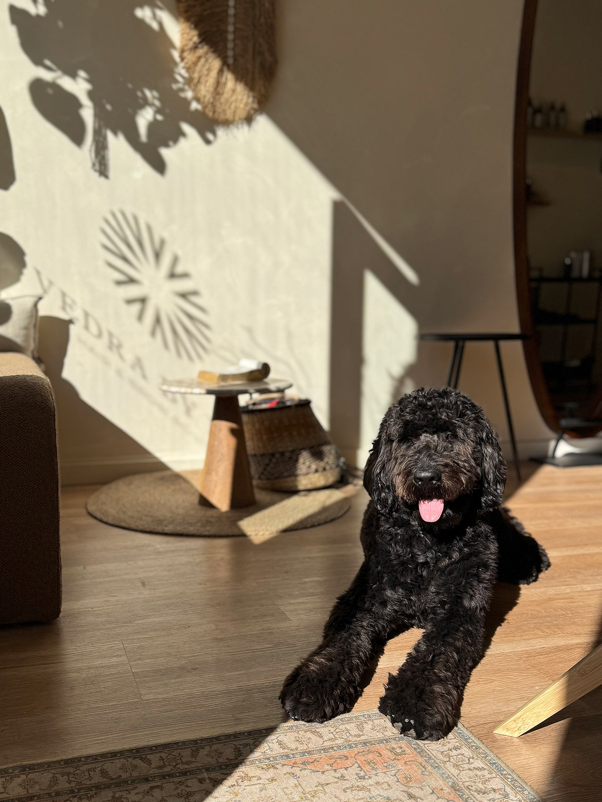 Zijn hypoallergene vacht maakt dat iedereen met hem kan knuffelen en zijn aanwezigheid brengt een zachtheid die je meteen omarmt. Energie en liefde delen met Mos voelt als een dagelijkse reminder: een beetje extra warmte kan echt wonderen doen.
